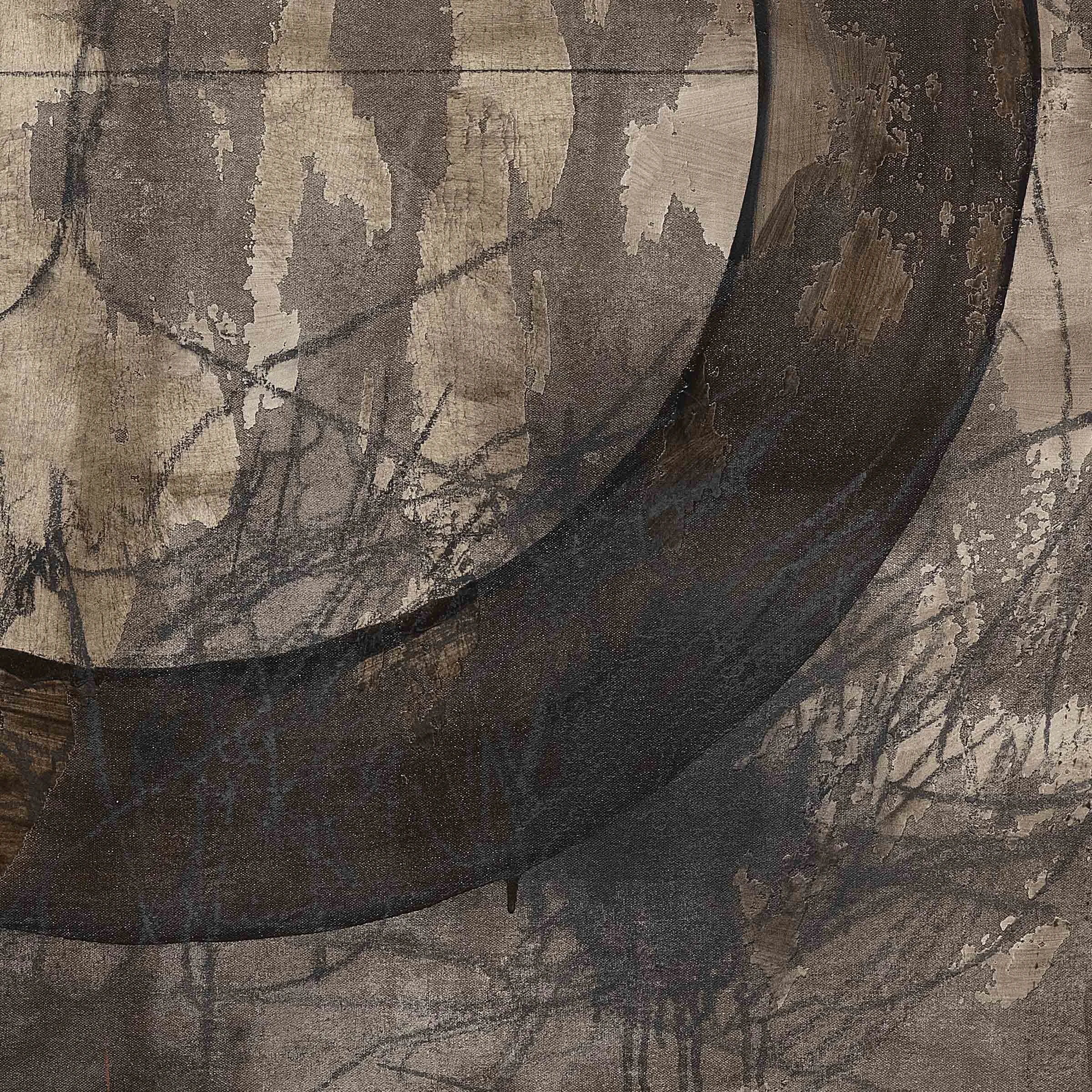 Iron chromate, graphite, terracotta, paper, and acrylic on canvas